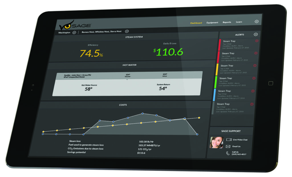 SAGE® från Armstrong är en intelligent programvara som ger er en smart övervakning, mätning och rapportering av ert ångsystem. Genom att vara informerad kan du vara proaktiv, SAGE® tillhandahåller regelbundna uppdateringar, anpassade rapporter och viktiga realtidsdata.